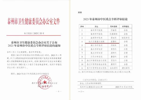 好消息!我院肛肠科通过泰州市中医重点专科评审。