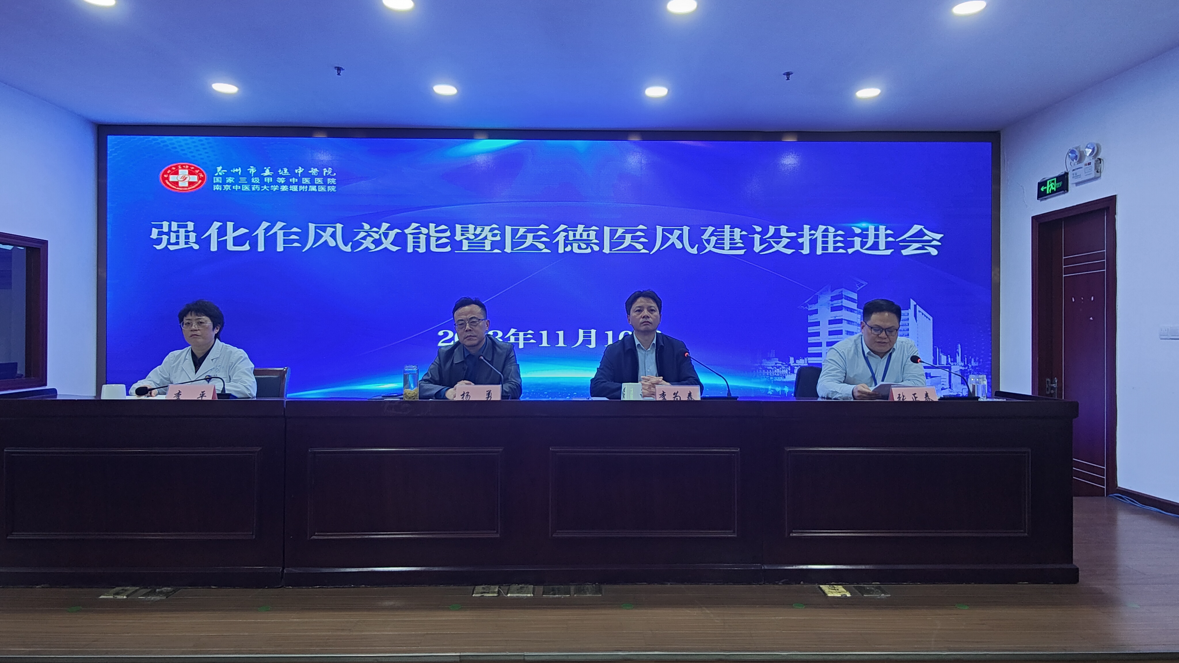 就抓好医院作风效能和医德医风建设,院党委书记杨勇强调:第一,坚持“病患至上、生命至上”的原则。作为苏中地区首家县域三级甲等中医院,要持续提升医院管理水平,不断提高医疗服务能力,践行初心使命,守护一方健康,尽可能满足区域内群众日益增长的健康需求,打造一个“政府放心、群众满意、社会认可、职工幸福”的有温度的医院。坚持以党建为引领,以患者为中心,以员工为根本;第二,要形成“善于学习、提升能力”的自觉。医生必须要做到奉献和学习两点。要坚持终身学习。要及时查阅关注国际国内最新的医学前沿知识。培养自己终生自学的习惯和能力、独立分析问题和解决问题的能力、与患者和社会沟通的能力。要注重学用结合。在学以致用上下工夫,在能力提升上想办法。要甘于奉献担当。青年医师要锻炼自身的抗压能力,在遇到困难时,要坚强面对,愈挫愈勇;在碰到委屈时,要能够忍受。在工作中要调整好心态,放开手脚、积极主动,摒弃不想干、不能干、不敢干的负面情绪,对定下的事情、瞅准的目标,一定要勇于挑战、敢于攻坚、负重前行。第三,要发扬“马上就办、真抓实干”的作风。习近平总书记在福州工作时,提出“马上就办、真抓实干”工作精神,就是要提高办事效率,讲求工作实效,解决干部的“推、拖、绕、躲”责任问题和“庸、懒、散、浮”作风问题。要强化服务意识。要强化高效意识。要强化合作意识;第四,要强化“制度执行、问责问效”的刚性。围绕制度抓督查。抓住关键问题和关键环节建章立制,使医德医风建设工作制度化、规范化、经常化。围绕效能抓执行。以精益求精、敢于争先、敢于创新的“三争”精神,不折不扣地执行好医院的各项决策部署,把大事做好、小事做细、细节做精。围绕落实抓问责。要建立抓落实的责任机制、督查机制、奖惩机制,用好考核指挥棒,用好监督执纪四种形态,用好制度执行的刚性,在全院形成奖优罚劣、干事创业的良好局面。要强化执纪问责的力度和频次,紧盯群众反映强烈的突出问题,发现一起、查处一起,严肃追究责任。要严格落实医德医风建设责任制,对出现医德医风问题的科室和个人,严格进行层级问责。要刚性落实医德医风电子考评制度,把重点放在加强日常监管和考评记实上,与医务人员职称晋升和评先评优等切身利益挂钩,真正体现医术医德同考核。