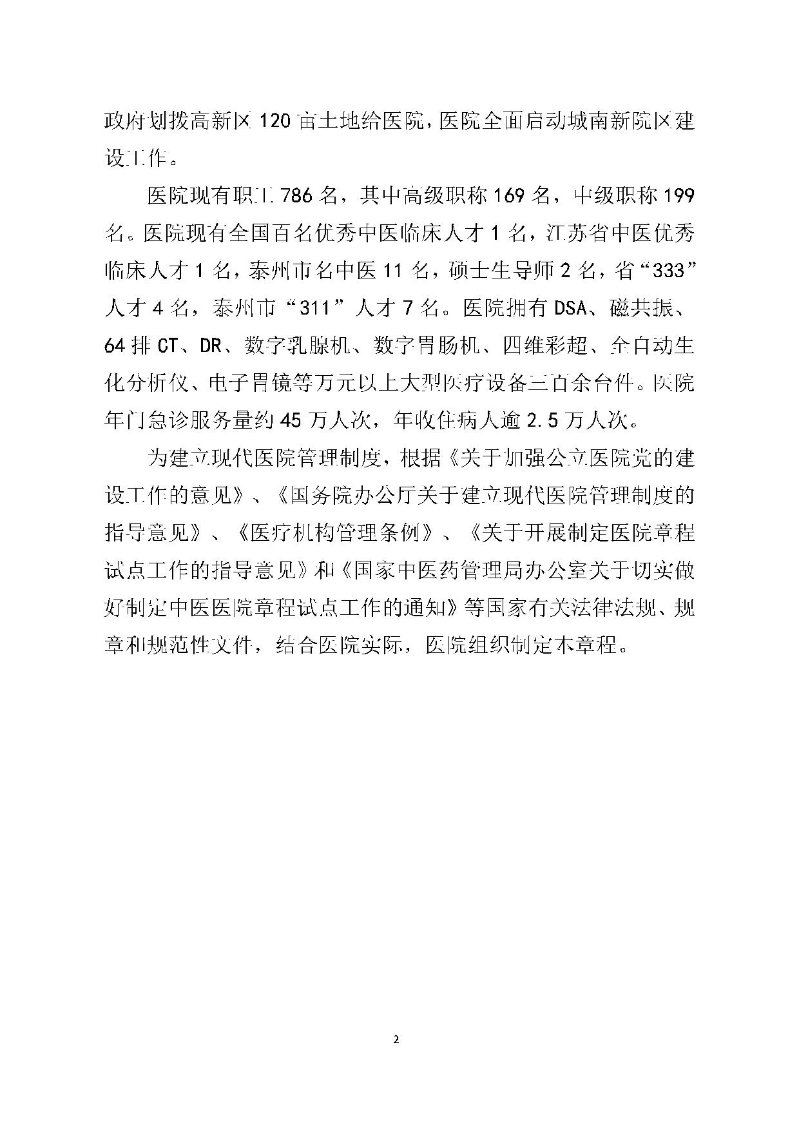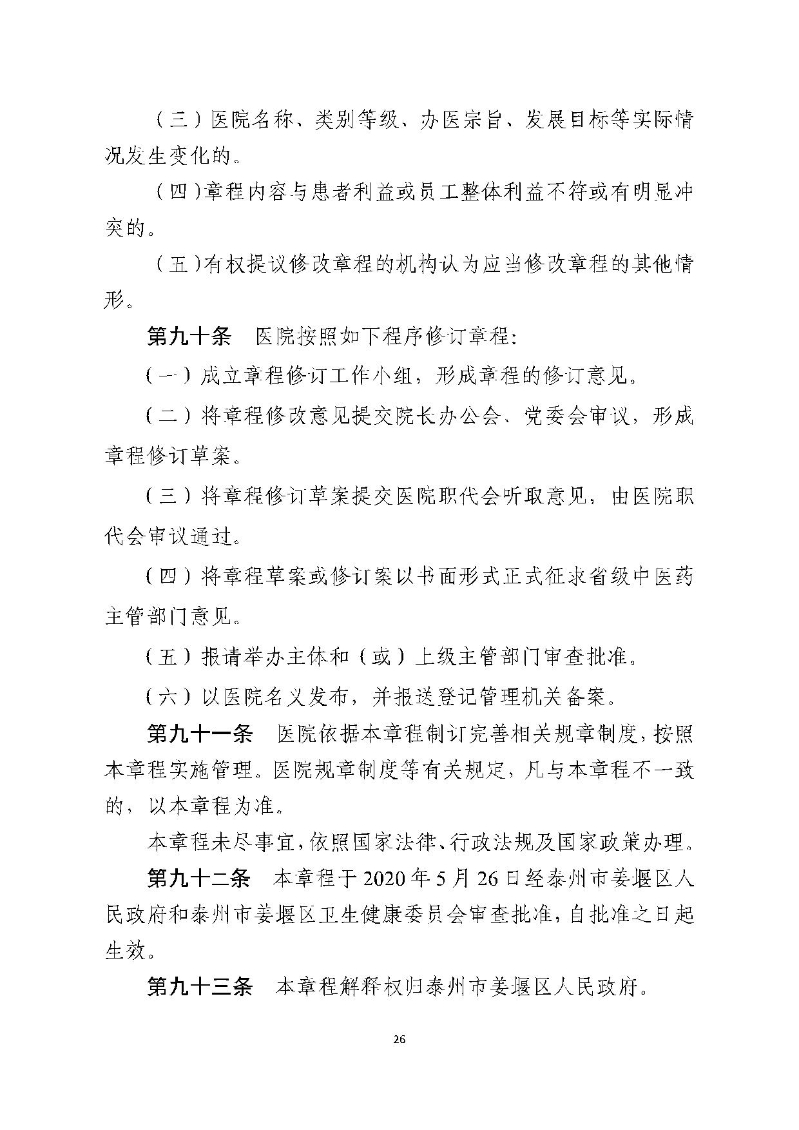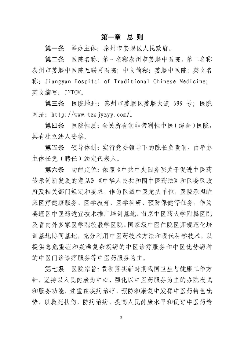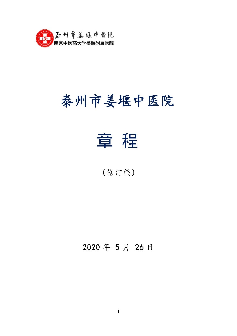 泰州市姜堰中医院章程(修订稿)