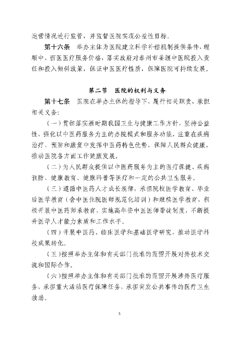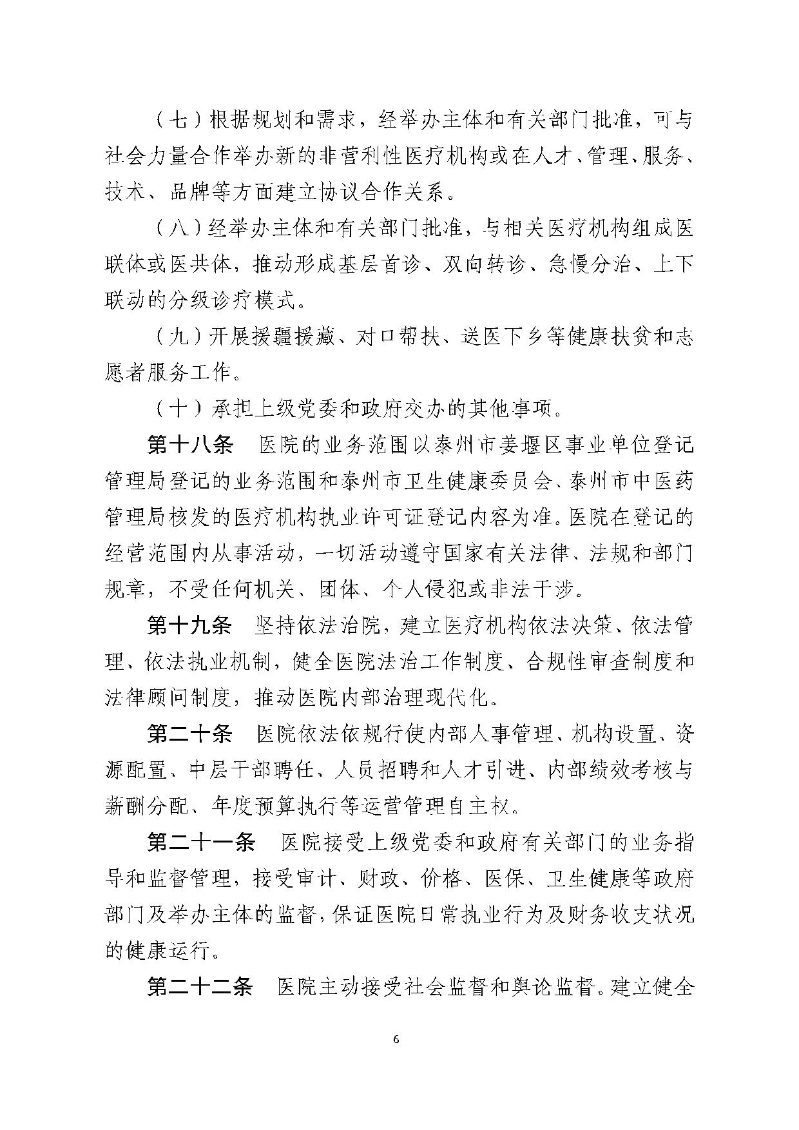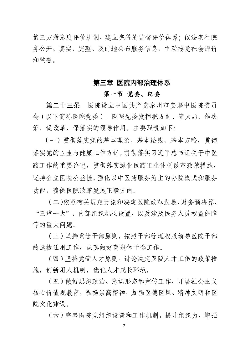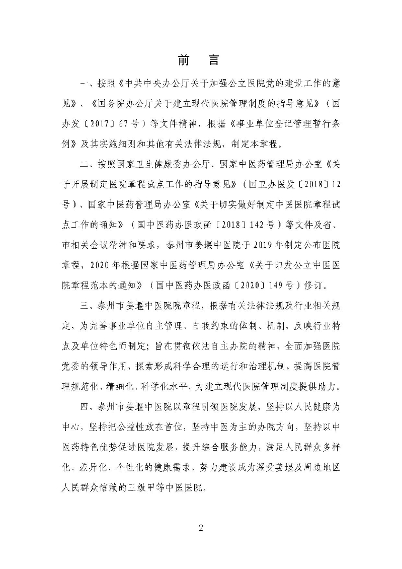 泰州市姜堰中医院章程(修订稿)